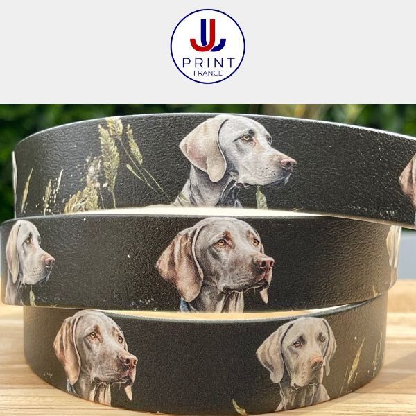 Créez des accessoires haut de gamme grâce à notre Biothane® imprimé en UV avec ce motif exclusif BRAQUE DE WEIMAR
