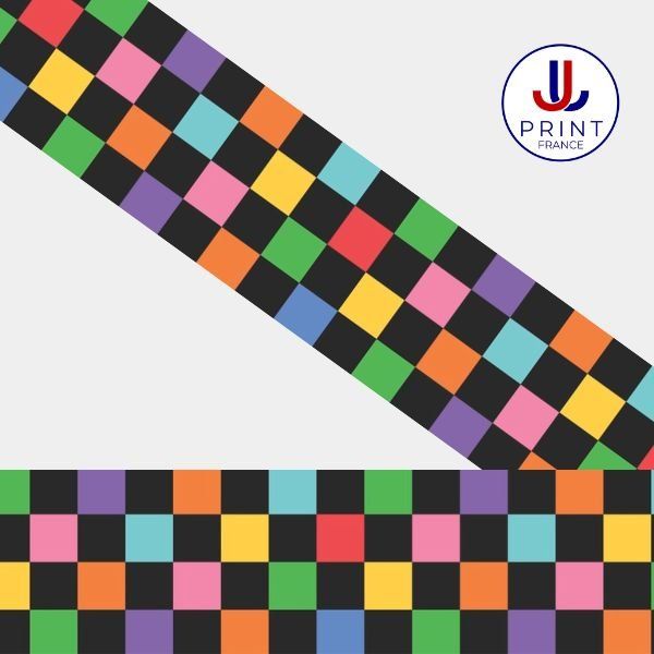 Créez des accessoires haut de gamme grâce à notre Biothane® imprimé en UV avec ce motif exclusif DAMIER POLYCHROME