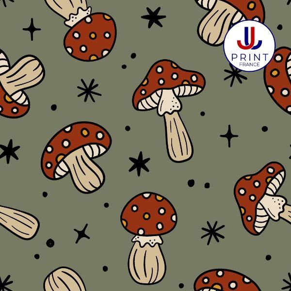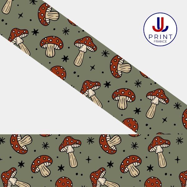 Créez des accessoires haut de gamme grâce à notre Biothane® imprimé en UV avec ce motif exclusif MUSHROOM