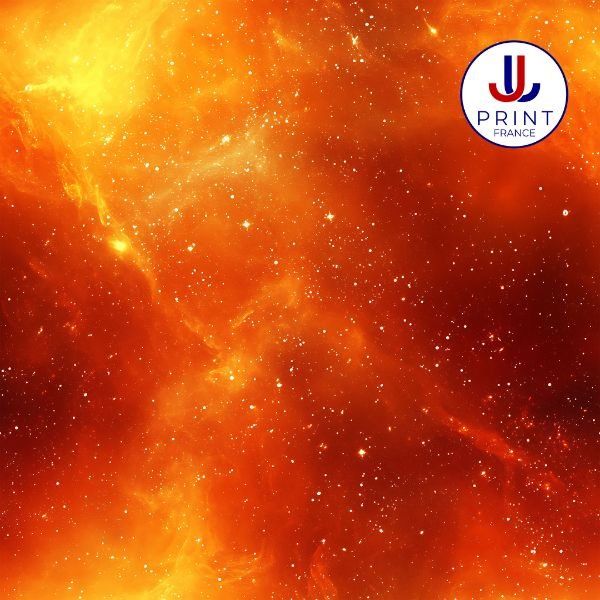 Créez des accessoires haut de gamme grâce à notre Biothane® imprimé en UV avec ce motif exclusif ORANGE GALAXY