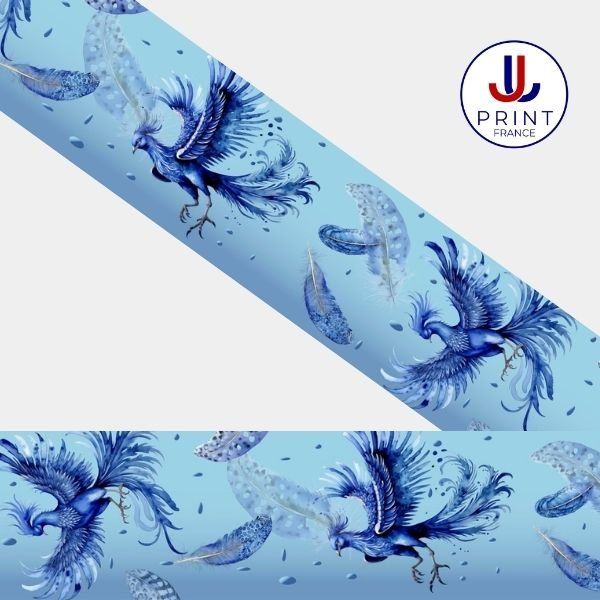 Créez des accessoires haut de gamme grâce à notre Biothane® imprimé en UV avec ce motif exclusif PHOENIX BLEU