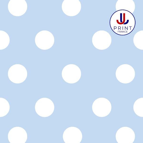 Créez des accessoires haut de gamme grâce à notre Biothane® imprimé en UV avec ce motif exclusif POLKA CIEL-BLANC