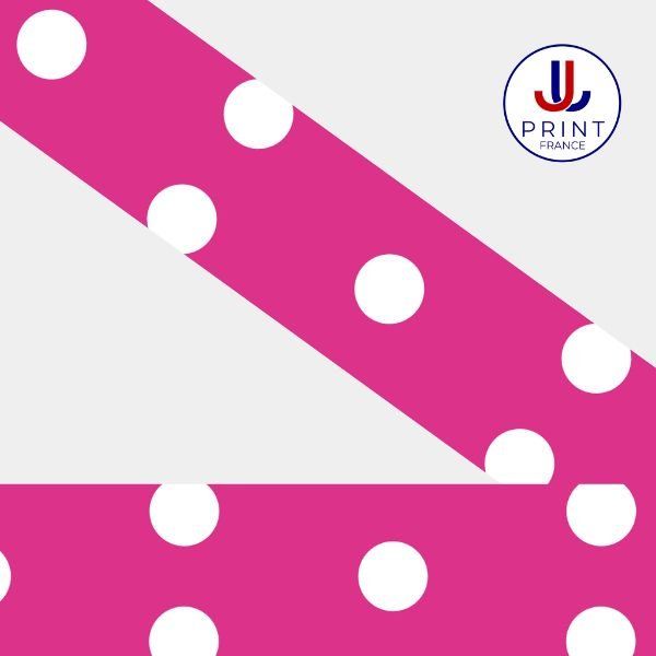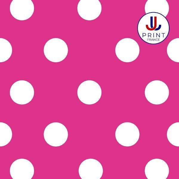 Créez des accessoires haut de gamme grâce à notre Biothane® imprimé en UV avec ce motif exclusifPOLKA FUCHSIA BLANC