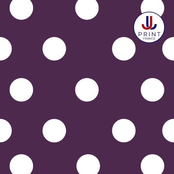 Créez des accessoires haut de gamme grâce à notre Biothane® imprimé en UV avec ce motif exclusif POLKA MAUVE-BLANC